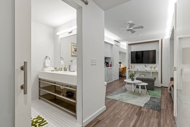 Feel at home in this modern, open-concept studio, ideally situated on the 1st floor of a quiet, residential building. This apartment is perfect for work or relaxation. This stylish apartment features a fully equipped kitchen with a coffee maker, kettle, olive oil, salt, pepper, sugar, pots, pans, utensils, toaster, and microwave. Bathroom essentials include shampoo, conditioner, body wash, and a hair dryer. Enjoy the convenience of an in-unit washer and dryer, air conditioning, room-darkening shades, and a 50" smart TV with streaming. A dedicated workspace is available for remote work. Experience the city at your doorstep! This apartment is near University Circle, Cleveland Clinic, top museums, and Little Italy, and just minutes from Downtown, Rocket Mortgage Field House, Progressive Field, and Browns Stadium. Explore Cleveland easily by bike, train, car, or bus. Free private parking is included (Spot #27). Units share a similar style, but layout and décor may vary. Guests are responsible for replenishing their own consumables after the initial supply is depleted. A noise-aware sensor is installed in the unit to monitor decibel levels, ensuring a peaceful environment; it cannot record any audio. [SI] 12607 Larchmere Blvd is an apartment community located in Cuyahoga County and the 44120 ZIP Code.