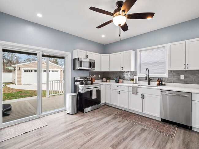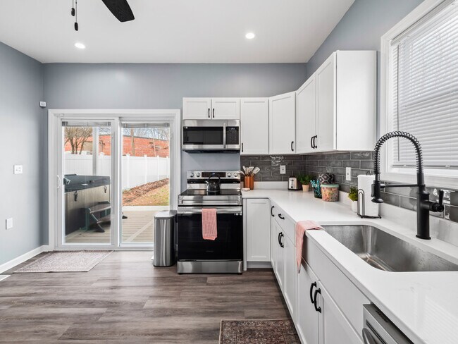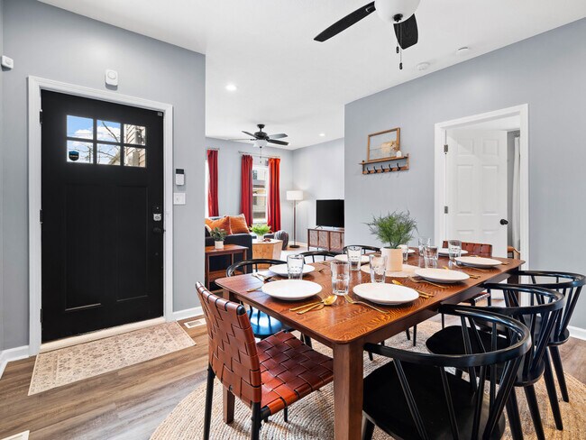 Welcome to this spacious and stylish 4-bedroom retreat, where comfort meets convenience. This inviting home boasts 3 full bathrooms, ensuring ample space for your group to unwind and refresh after a day of adventures. The first floor features a bedroom with a twin trundle bed, a full bathroom with a tub and shower combination, and a washer and dryer. Additionally, the first floor includes a living room, a dining room with seating for 8, and a large kitchen with plenty of counter space for prepping your favorite meals. Upstairs, you will find the remaining 3 bedrooms, one with a queen bed and the other two with king beds. The master bedroom features a canopy king bed, an ensuite bathroom, a walk-in closet, and a small balcony with seating for two. An additional full bathroom is also located on this floor. The home offers a large kitchen with ample counter space, perfect for preparing meals. Entertainment options include an old-school Nintendo 64 with Mario and 007, as well as a wireless PacMan game. Relax outside in the spacious hot tub, with enough seating for 7. The yard can be fully fenced and the detached garage has enough room for 2 vehicles. A maximum of 2 dogs are allowed for a flat fee of $125 per stay. Requests to bring a 3rd or 4th dog are subject to approval and will incur an additional $100 fee. Undisclosed pets will result in a $150 fee and may lead to reservation cancellation without refund. This property is within walking distance to the RTA station, which can take you to downtown Cleveland, and is a short drive from all the Ohio City and Gordon Square bars, restaurants, and coffee shops. Undisclosed pets will result in a $150 fee and may lead to reservation cancellation without refund. A maximum of 2 dogs are allowed for a flat fee of $125 per stay. Requests to bring a 3rd or 4th dog are subject to approval and will incur an additional $100 fee. No cats are allowed to protect guests with allergies. Please be courteous to neighbors and keep the noise to a minimum when outside. There is a $500 fine for excessive noise levels between 10pm and 8am. Smoking inside will incur a minimum charge of $500 for extra cleaning, but smoking outside is permitted. No underage consumption or drugs, and no parties or large gatherings are permitted. A $150 fee will be charged for late check-out without prior notice. Please remove your shoes when entering the house to keep the space clean. Hot tub rules include a $250 cleanliness fine if not followed, with a maximum occupancy of 7, no kids without adult supervision, no diving or jumping, no food or drinks, no glass, and no smoking while in the hot tub. Turn off jets after use. Guests are responsible for refilling the propane tank for the grill if needed, with reimbursement available upon receipt submission. Checkout instructions are appreciated but not mandatory. [SI] Unique Features 6110 Lawn Ave is an apartment community located in Cuyahoga County and the 44102 ZIP Code.