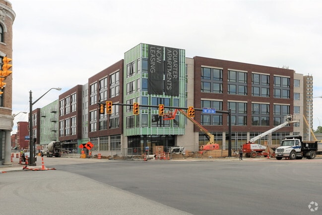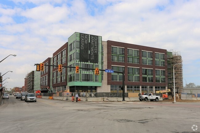 Quarter features luxury 1-bed, 2-bed and studio apartment homes in Clevelands historic Ohio City neighborhood. Each apartment is contemporary and timeless, with materials chosen for their beauty and durability. Residents are steps away from on-site amenities like a vibrant art gallery, grocery, dog park, and heated pool. Lounge on the rooftop patio and take in city and lake views. The Quarter is an apartment community located in Cuyahoga County and the 44113 ZIP Code. This area is served by the Cleveland Metropolitan attendance zone. Unique Features