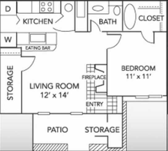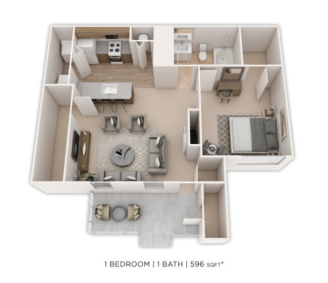 1 Bedroom, 1 Bath 596 sq. ft.