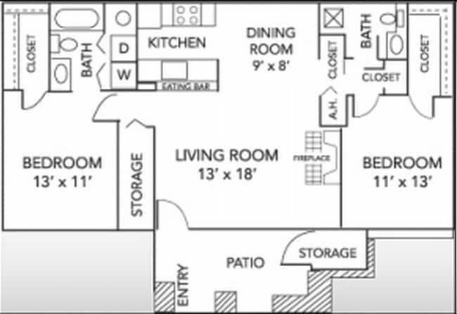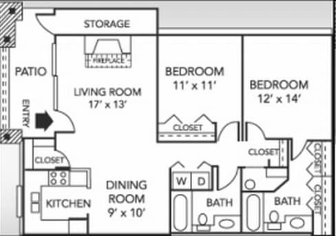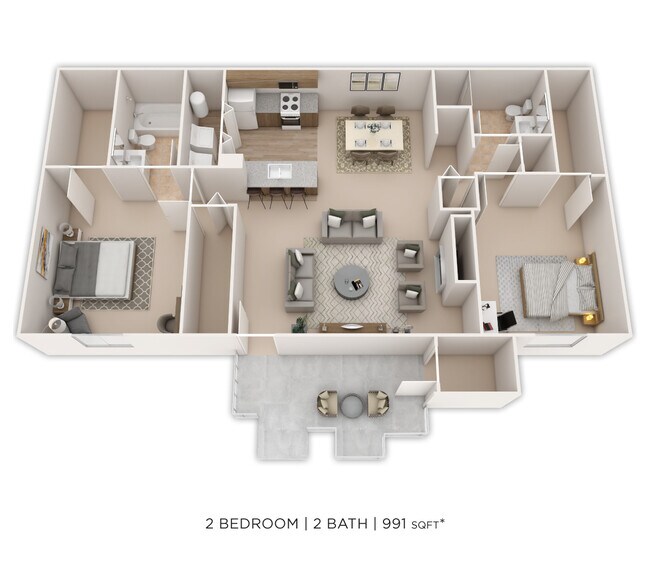 2 Bedroom, 2 Bath 991 sq. ft.