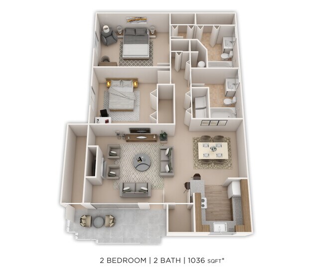 2 Bedroom, 2 Bath 1,036 sq. ft.
