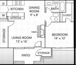 1 Bedroom, 1 Bath 767 sq. ft.