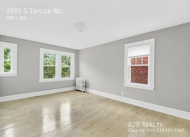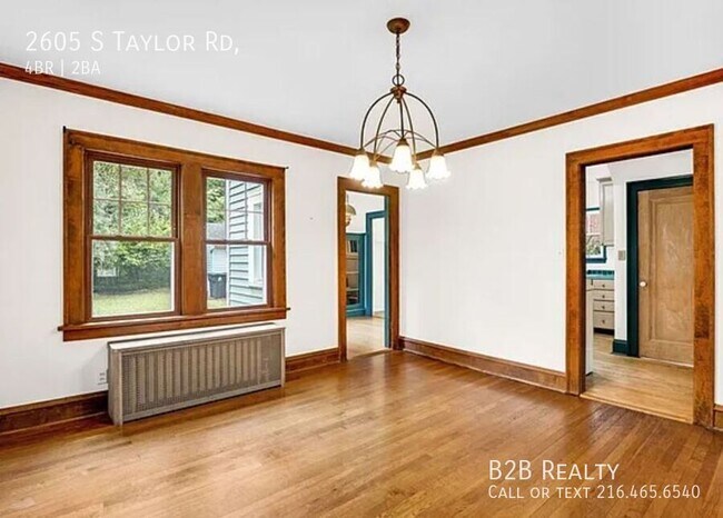? Welcome Home! Discover this beautiful 4-bedroom single-family home featuring spacious living areas, modern finishes, and plenty of natural light. Enjoy a fully equipped kitchen, comfortable bedrooms, and a private backyard perfect for relaxing or entertaining. Conveniently located near schools, shopping, and public transportation — this home offers both comfort and convenience. Don’t miss your chance to make this stunning property your new home! Schedule a tour today. Interior Features: • Spacious Living Area: The open-plan living area is designed for relaxation, featuring flooring and neutral tones that create a warm and inviting atmosphere. • Modern Kitchen: The kitchen is equipped with essential cabinetry and ample workspace, ensuring effortless meal preparation. Enjoy the convenience of modern fixtures along with plentiful storage space. • Comfortable Bedrooms: The bedrooms offer a peaceful oasis, perfect for unwinding after a busy day. Its tranquil setting ensures a good night's sleep. • Updated Bathroom: The bathroom is clean and functional, with modern fixtures that cater to your daily needs. Additional Information: • Screening: We charge a $25 fee per person over the age of 18 for background checks. Our comprehensive screening process includes credit, background, and eviction checks as well as verification of income, job history, and landlord references. We strive to approve tenants who may not initially think they qualify. • Neighborhood Insight: To get a true sense of the area, we recommend visiting the property at different times of the day. This will give you a realistic feel for the neighborhood’s ambiance and what to expect. • Maintenance: B2B Realty ensures that all properties are safe and well-maintained. While tenants are not permitted to make changes or repairs to the property, our dedicated maintenance team is always available to address any issues. Security Deposit Waived via Obligo: A flexible, affordable alternative to traditional deposits, offering financial freedom and peace of mind. Availability: • Self-paying and Section 8 tenants are welcome to apply for this property. Pets: Pets aren't allowed. B2B Fees: Monthly Rent - $1,950 (Recurring) Refundable Security Deposit - $1,950 (Non-recurring) Monthly Resident Benefit Package - $49.50 (Recurring) Pet Fee: $30 (If applicable - Recurring) Apply Now!!!! 2605 S Taylor Rd is a house located in Cuyahoga County and the 44118 ZIP Code. This area is served by the Cleveland Heights-University Heights City attendance zone.