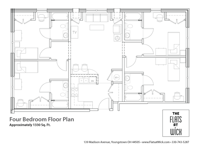 Multi-Bedroom Apartments in Youngstown, Ohio One, two, three and four bedroom floor plans are available at The Flats at Wick. This property offers a variety of spacious apartments designed to accommodate the needs of all. Each unit comes fully furnished with modern amenities, including a private bath, high-speed Internet, cable and on-site parking. All-Inclusive Student Housing Take advantage of The Flats at Wick’s workout facility, convenient vending machines and on-site laundry rooms. “The Flats,” as they’re lovingly referred to among residents, are close to Youngstown State University and within walking distance to many popular restaurants. Enjoy a round of disc golf at Wick Park’s Disc Golf Course or take a stroll to YSU’s campus for on-site dining or studying with friends. LIVE. WORK. PLAY. Everything you need is right here! Interested in learning more about The Flats at Wick? Call us today, we are here to help you to start downtown living. Flats at Wick is an apartment community located in Mahoning County and the 44504 ZIP Code. This area is served by the Youngstown City Schools attendance zone. Unique Features