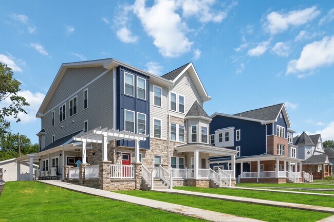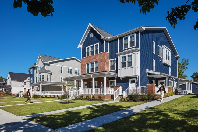 Our strategic approach is to develop a top-quality housing product at the lowest possible price point for working individuals and families. It is real estate development with a purpose, to apply innovative design and amenities that transform environments for quality modern living within the urban setting. Unique to newly constructed multi-family products, 89th Rising sits within the fabric of a single-family housing streetscape. It is a low-density 48-unit development comprised of six 8-unit structures, consisting of 24 one-bedroom flats and 24 two story two-bedroom townhomes. Every unit has its own exterior entry from a traditional porch mirroring the architectural vocabulary of single-family structures. With free assigned off street parking and optional paid garage parking, the rental experience of 89th Rising is a breath of fresh air for those who desire to break the mold from the traditional sardine can style apartment facilities. Nationally, this product represents the “missing middle” providing a cross between conventional single-family and multi-family living 89th Rising is an apartment community located in Cuyahoga County and the 44106 ZIP Code. This area is served by the Cleveland Metropolitan attendance zone.