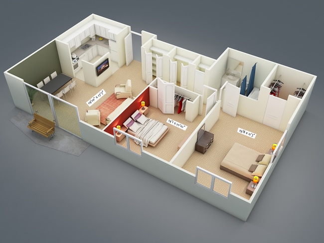 Two Bedroom One Bath Corner Suite First Floor D...