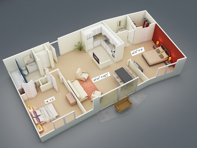 Two Bedroom 1.5 Bath Split Suite