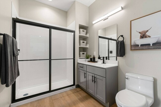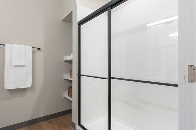 - Spacious glass encased shower*