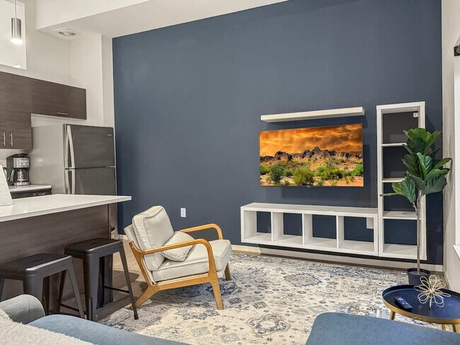Stay in the heart of Cleveland and feel at home in this exquisite 1-bedroom sanctuary. Perfectly situated, this property is just minutes away from top attractions like Rocket Mortgage FieldHouse, FirstEnergy Stadium, Progressive Field, Playhouse Square, the Rock & Roll Hall of Fame, Cleveland Hopkins International Airport, and Wolstein Center. Ideal for sports fans and concertgoers, this apartment offers easy access to dining, entertainment, and more, allowing you to experience the best of Cleveland in a prime location. Discover the perfect spot for your Ohio adventure with this stylish haven featuring high-speed Wi-Fi and a plush queen-size bed for restful nights. Unwind in unparalleled comfort with modern design elements like ambient LED lighting that highlights the tasteful furnishings in the living and dining areas. Enjoy a movie on the deluxe 55” 4K HDR Smart TV with Netflix App, just log in with your own account. The well-equipped kitchen features modern appliances and all the necessary tools to prepare delightful meals, while the spa-like bathroom offers a refreshing bath and shower with fresh towels and essential toiletries provided for your comfort. Pets are allowed based on size and must be disclosed upfront to avoid cancellation. Additional pet cleaning fees are $25 per pet per day for 1-4 nights, $200 per pet for 5-29 nights, and $300 per pet for 30+ nights. Only cats and dogs are allowed, with a maximum of two pets. If undeclared pets are discovered, fees will double. Parking is available for one registered vehicle per reservation, with extra vehicles required to use paid parking nearby. Located in the heart of Cleveland, this apartment is minutes from top attractions such as Rocket Mortgage FieldHouse, FirstEnergy Stadium, Progressive Field, Playhouse Square, the Rock & Roll Hall of Fame, Cleveland Hopkins International Airport, and Wolstein Center. Perfect for sports fans and concertgoers, it offers easy access to dining, entertainment, and more, making it an ideal base to explore the vibrant city of Cleveland. To ensure a smooth self check-in process, detailed instructions will guide you through everything you need to know, from accessing the property to using the amenities. Our standard check-in time is 4 PM, with early check-in at 2 PM available for a $35 fee, subject to approval. Check-out time is 10 AM. A $1,000 cleaning fee applies for smoking or intoxication violations, and unauthorized gatherings will lead to police involvement, immediate eviction, and no refund. A $100 fee applies per unauthorized guest. Please avoid leaving trash in front of your unit door, as non-compliance may result in a $250 charge. Key fobs must be taken care of, as replacements cost $500 each. Food seasonings and herbs are not provided, so feel free to bring any specific ones you may want to use during your stay. Need to stay connected? A chic work desk with an ergonomic office chair provides a productive space, making it ideal for business trips and extended stays. High-speed Wi-Fi ensures you can work efficiently from the comfort of your home. [SI] 1101 Euclid Ave is an apartment community located in Cuyahoga County and the 44115 ZIP Code.
