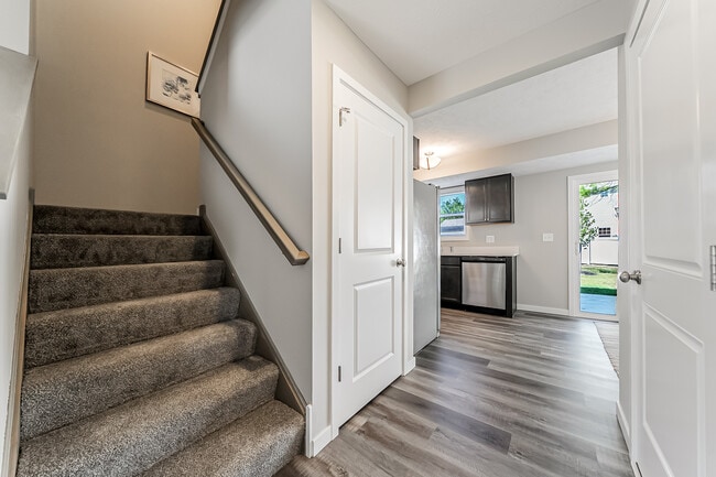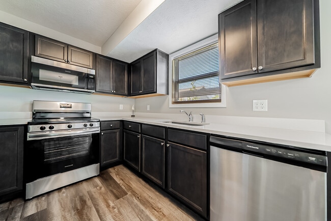 The 1200 square feet townhomes with attached garage are a must see! The first floor with its wood-like vinyl plank floors has the kitchen, dining space, laundry space, and living room. The kitchen comes with stainless steel appliances, many cabinets and a bunch of counter space. The Dining area looks out to a patio. The Living room is very spacious. Upstairs you will find 2 spare bedrooms with a hall bath. Then a Master Suite with a huge walk-in closet and a spacious Master Bath. The Kingston of North Olmsted is an apartment community located in Cuyahoga County and the 44070 ZIP Code. This area is served by the North Olmsted City attendance zone.