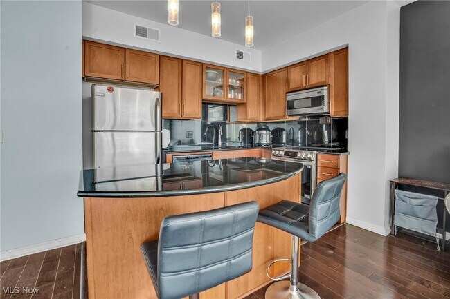 Modern appeal meets convenience in this 1-bedroom,1-bathroom condo in the desirable Plaza on Washington. Situated in the West Bank of the Flats,you can enjoy the views of the water from the floor-to-ceiling windows or from the terrace. This unit offers all of the charm and enjoyment of city life just outside your front door with direct access to the Superior Viaduct and only blocks away from Jacob’s Pavilion,restaurants,shops and so much more! Upon entering,you’ll immediately notice the natural lighting which illuminates the hardwood floor found all throughout. A spacious bedroom with a massive walk-in closet,laundry room,and ensuite bathroom can be found just off the entrance. The main hallway then opens up into a kitchen that features an open floor plan into the living room,perfect for relaxing or hosting. 24/7 concierge and security offered for added comfort and gym available on the same floor. Hurry! This one won’t last long—call today to schedule your private showing. 1237 Washington Ave is a condo located in Cuyahoga County and the 44113 ZIP Code.