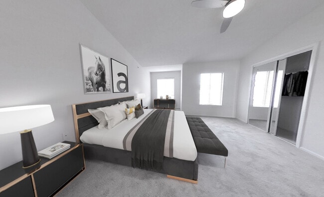 - Wall-to-wall oversized mirrored closets