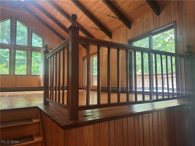 Custom built split level Swiss chalet style home with three bedrooms; Potential for a 4th Bedroom (Bonus Room (24X10),(Master Suite 18 x 15) with walk-in closet,Bed # 2 - 12 x 12,Bed # 3 - 12 x 9,Bonus Room above garage – 24 x 10),three full Bathrooms including Master Suite,Great Room (26 x 26) with a majestic wood burning stone fireplace,Library / Office (12 x 12),formal Dining Room (15 x 12),finished Recreation Room (18 x 14),Kitchen (20 x 11) with a Chef’s pantry and stainless steel appliances; stove / refrigerator / and microwave,dishwasher,utility room with a washer / dryer and utility tub,as well as a two car garage. Ample closets and storage. Smoke detectors throughout the home. Permanent neutral décor / colored window treatments / and custom drapes with ceramic tile throughout the first floor and recreation room,along with hard wood floors throughout bi-level second floors. Exposed hardwoods in oak,walnut,cherry paneling and oak stair cases throughout home. Custom over-sized sliding glass doors in kitchen and great room,as well as an exposed beamed cathedral ceiling and floor to ceiling window wall in great room. The exterior of the home includes a custom triangular front deck and two fish stocked ‘catch and release’ ponds,along with two bi-level tiered backyard custom detailed stone patios,located on 1.5 acres of breathtaking professionally landscaped and wooded park-like resort living. Gas Heating and central air. Chardon Public School District. 10613 Sherman Rd is a house located in Geauga County and the 44024 ZIP Code. This area is served by the Chardon Local attendance zone.