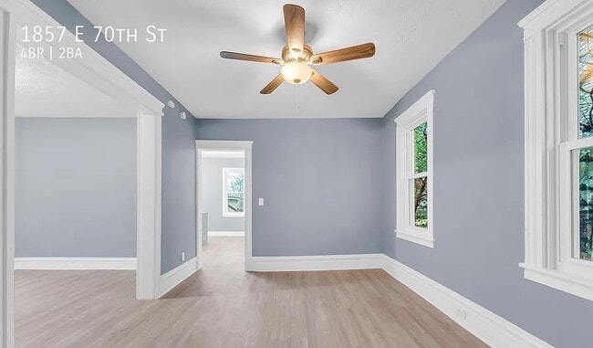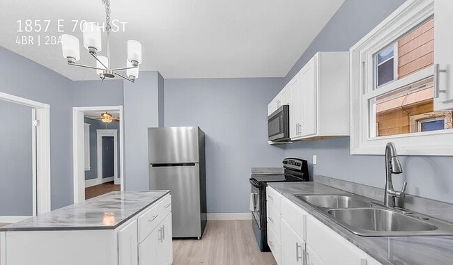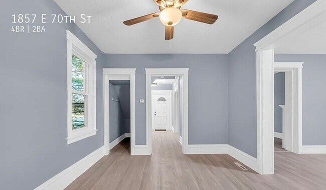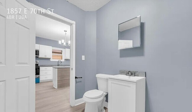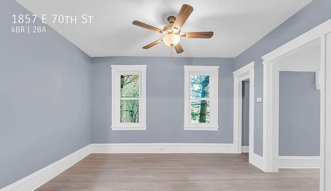1857 E 70th St Spacious 4-Bedroom Home for Rent!Welcome home to this beautifully updated 4-bedroom, 1.5-bath property located in a quiet, convenient Cleveland neighborhood. This home features a bright and open layout with fresh paint, modern finishes, and plenty of natural light throughout.Enjoy a large living area perfect for relaxing or entertaining, a spacious kitchen with ample cabinet space, and comfortable bedrooms offering privacy for everyone. The home also includes in-unit laundry hookups, off-street parking, and a private backyard for outdoor enjoyment.Conveniently located near schools, parks, and public transportation with quick access to downtown Cleveland.Rent: $1,400/monthSecurity Deposit:$1,400Bedrooms: 4Bathrooms: 1.5Serious inquires only 1857 E 70th St is a house located in Cuyahoga County and the 44103 ZIP Code. This area is served by the Cleveland Metropolitan attendance zone.