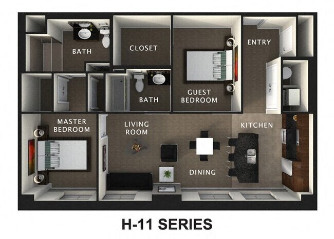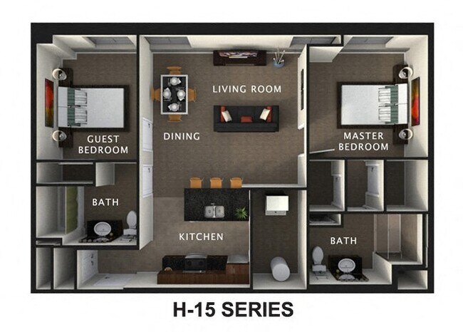 - Two Bedroom Suites Feature Two Full Bathrooms