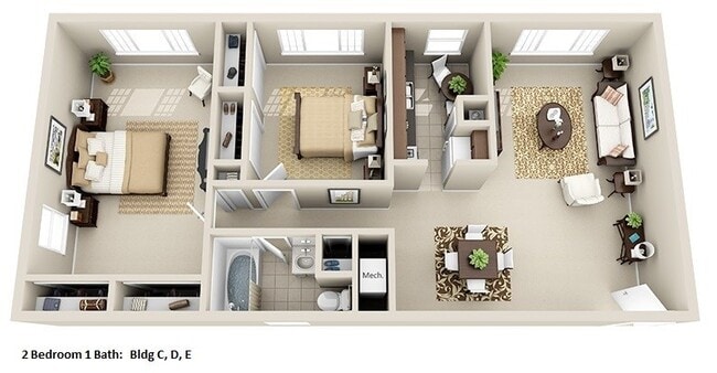 Garden 2 Bedroom, 1.5 Bath