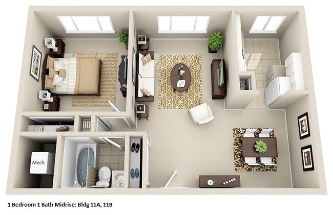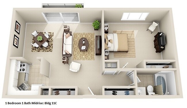 Mid-Rise 1 Bedroom, 1 Bath