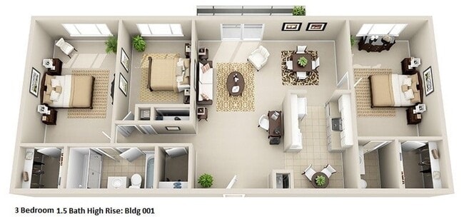 High-Rise 2 Bedroom, 1 Bath